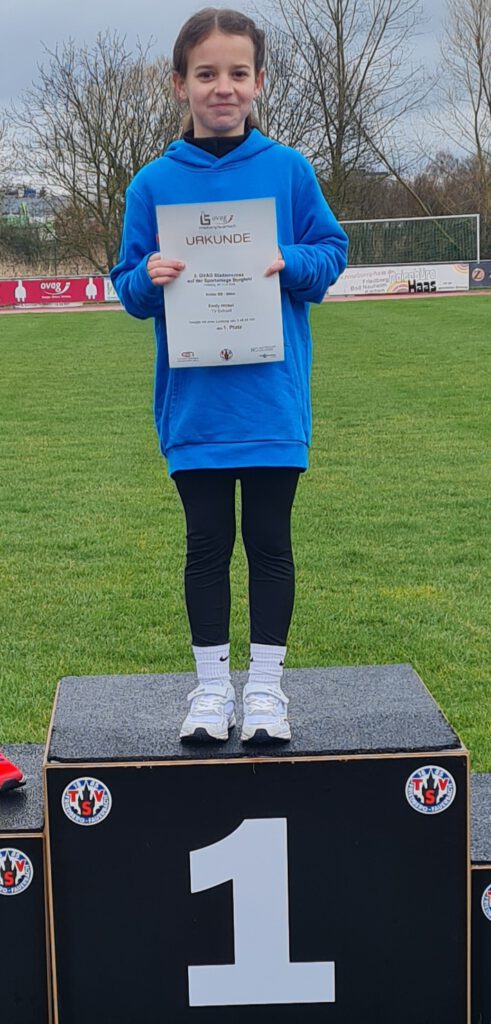 Hervorragenden Leistungen erbrachten hierbei Emily Hinkel (1.Platz W9), Jona Appel (2.Platz M14) und Josha Müller (3.Platz M12). Alle drei Athleten standen am Ende bei der Siegerehrung freudestrahlend mit ihrer Urkunde und einem kleinen Present auf dem Siegerpodest.