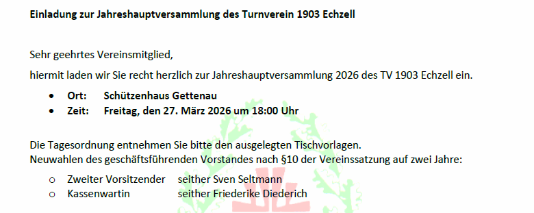 Einladung zur Jahreshauptversammlung